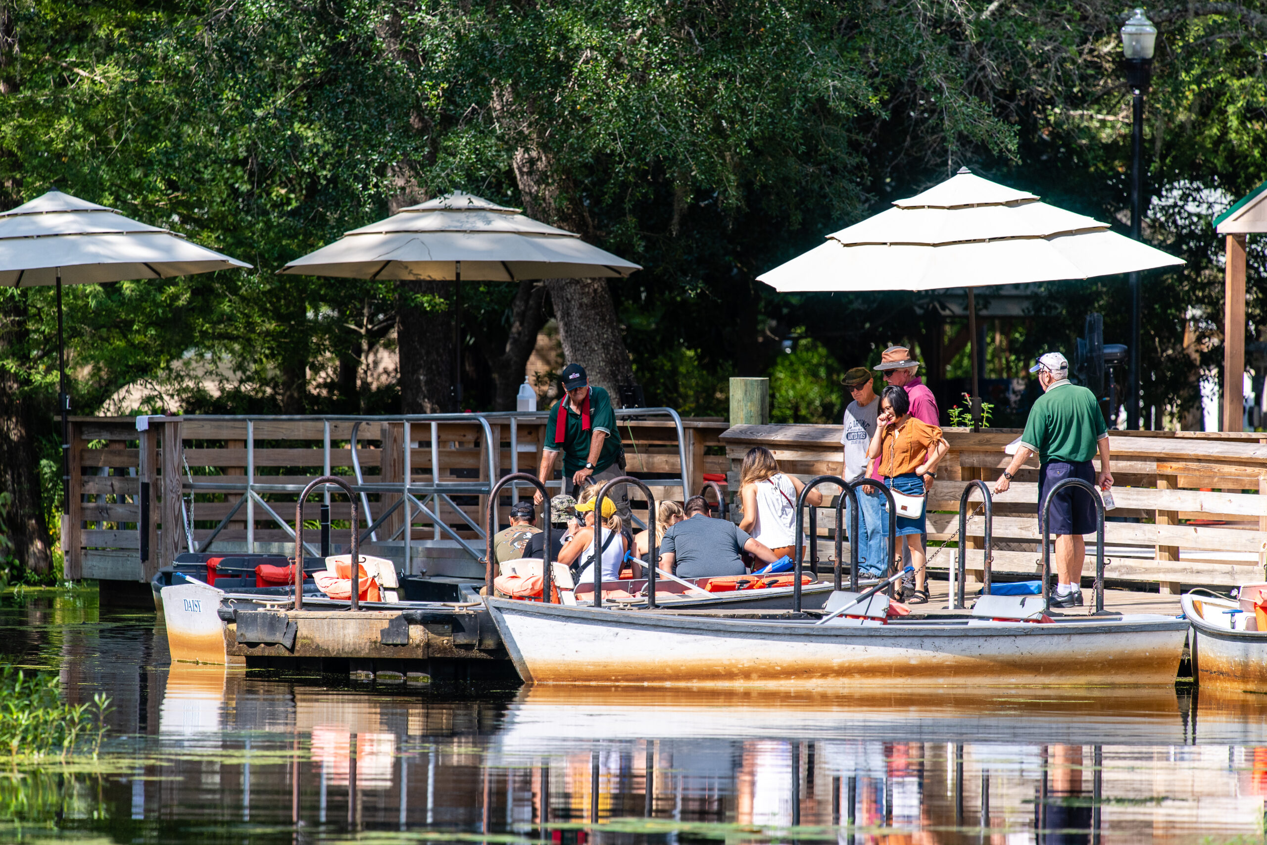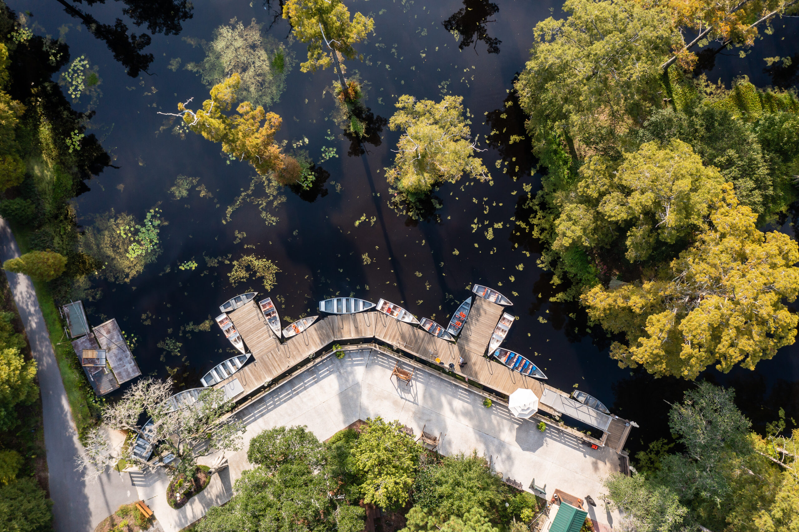 Our exciting swamp boat rides offer a unique view of our vast garden landscape. Revel in the reflections of towering bald cypress and tupelo trees mirrored in the blackwater. Paddle along a marked trail and keep an eye out for alligators, turtles, birds, lily pads, and other swamp life.