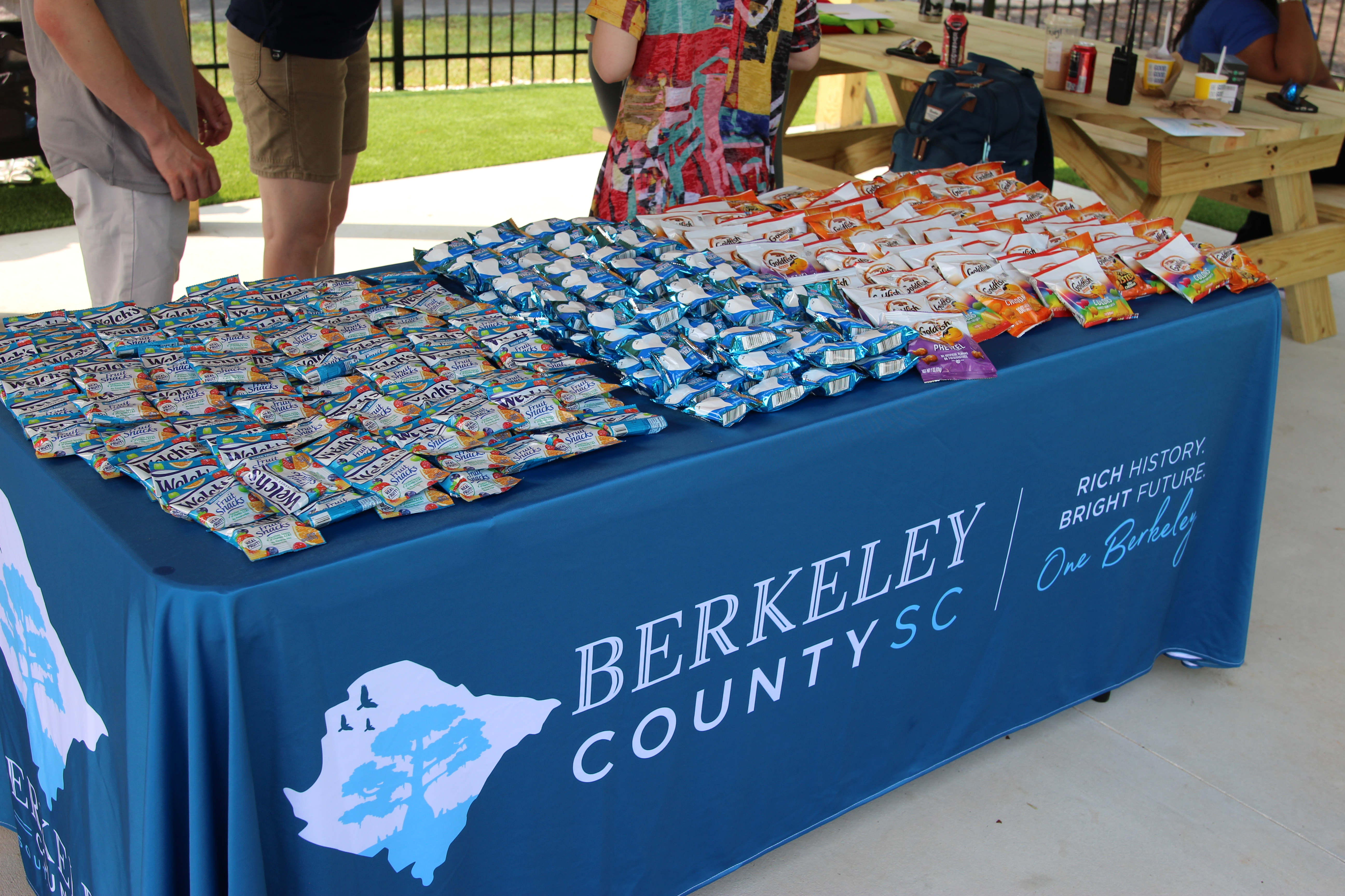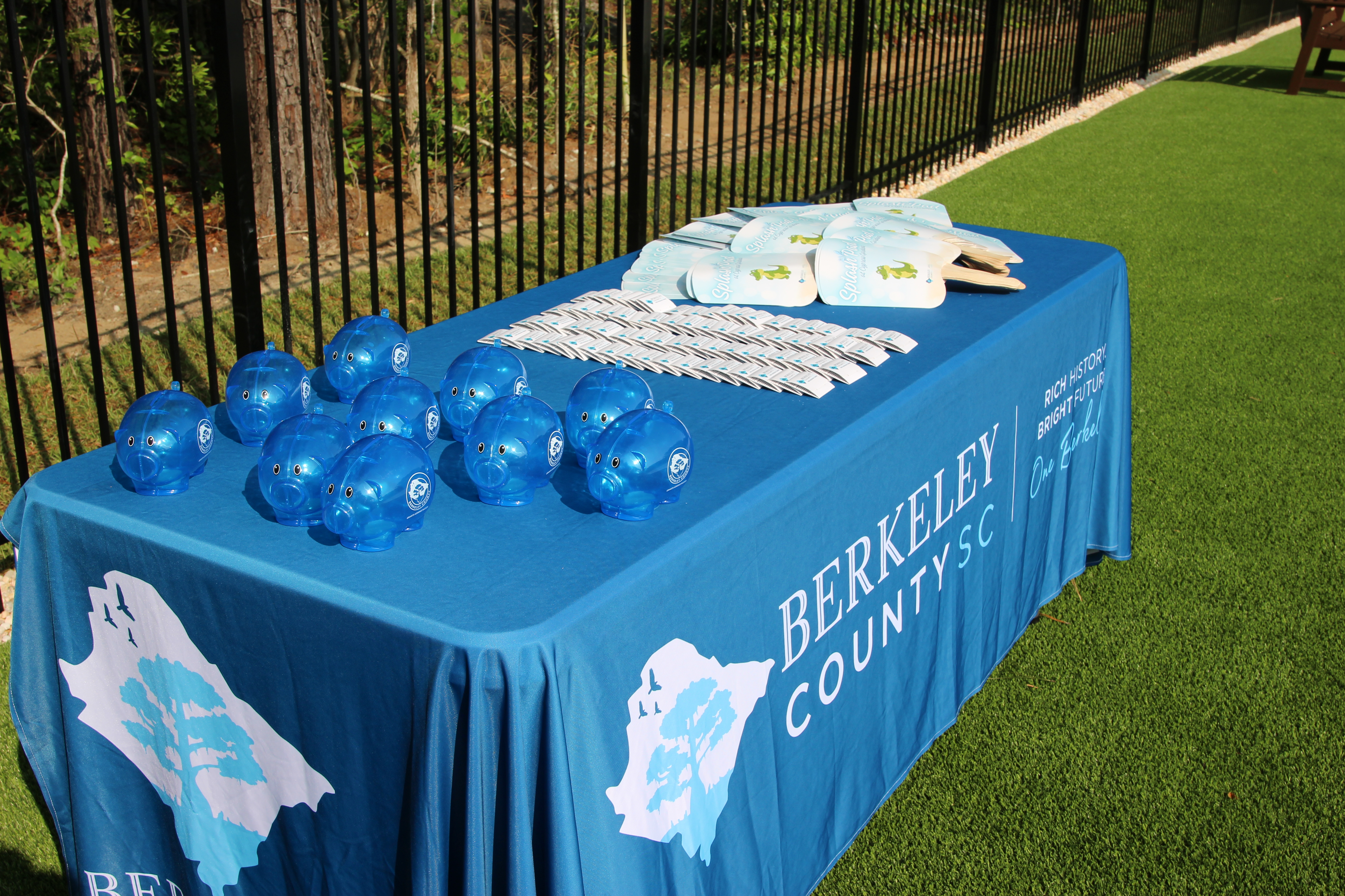 The new water wonderland amenity is complete with spray cannons, a tipping bucket and so much more for children to enjoy all summer long! The project was designed by Atkinson Pools. Berkeley County Roads & Bridges, Facilities & Grounds, IT, and Water & Sanitation also contributed greatly to the project.
